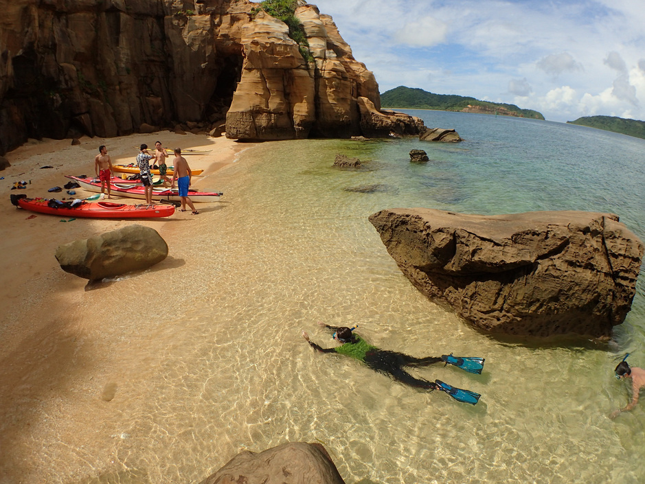④シーカヤックを体験してもらい無人の浜を堪能して帰着
