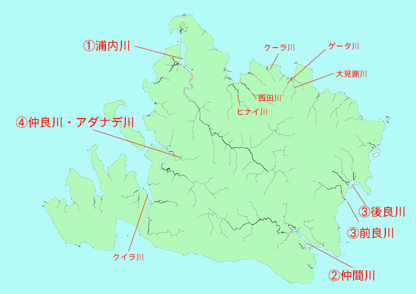 西部を流れる沖縄県で一番長い川である浦内川は急峻な山の間を流れることで渓谷をきずき、比較的透明度がある川の水が特徴です。