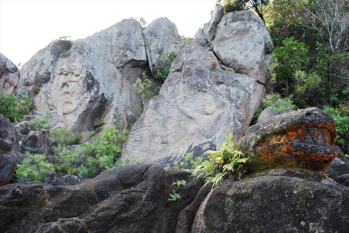 ガイドブックや地図の案内ではこのRangatira Pointの裏側にその彫刻が刻まれているはずだ。