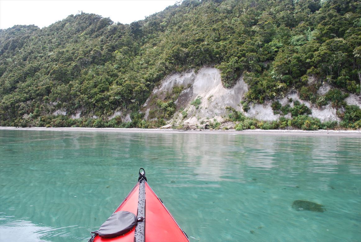心の中で堂々巡りを繰り返しながらも、しかし現状は漕いで行くしかない。予定では2時間半で漕ぎ切れると思っていた海峡横断を3時間半ちかくかけてなんとかMotuteraのワンドの中に入ることができた。時刻もすでに5時近くになっており、急がないとホリデーパークの管理人が帰ってしまう。濡れ鼠の状態でスプレースカートも付けたまま管理棟を探し、ギリギリ帰り支度をしている管理人のおじさんを引きとめてテントを張らせてもらう許可と、トイレやシャワーのカギを渡してもらう。